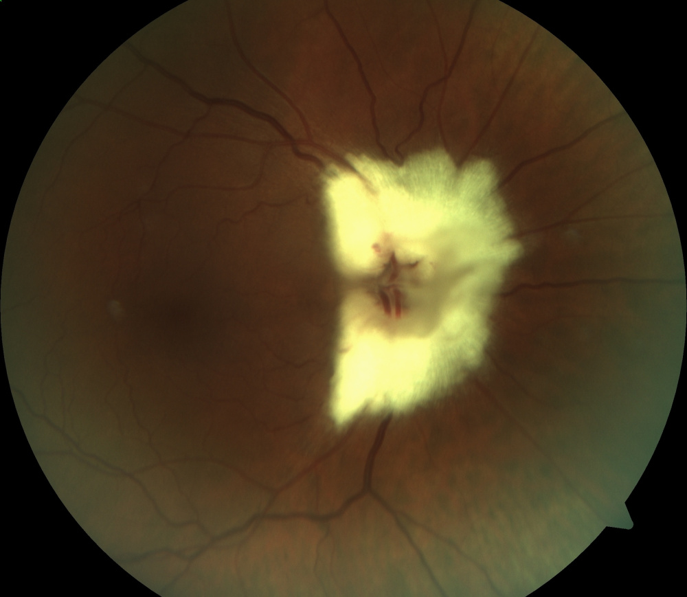 Descrição: Asymptomatic Exuberant Myelinated Retinal Nerve Fiber Layer