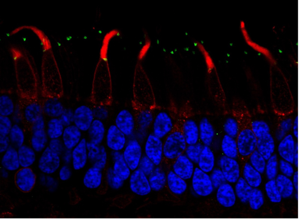 Descrição: This photo shows the localization of EYS in the human retina, detected by immunohistochemistry on postmortem retinal tissue.